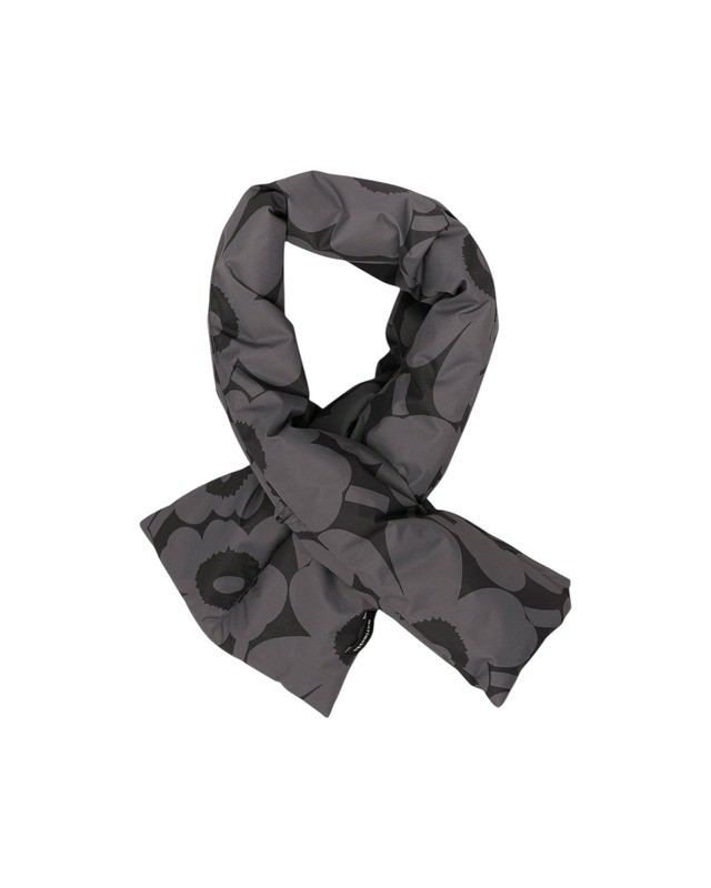 [マリメッコ国内正規販売代理店] 中わた入りのパデッドスカーフです。 端を差し込むスリット入りで、着脱もスムーズなデザイン。軽くて暖かく、外出時の防寒具としてはもちろん、冷えの気になる室内でもシャツやニットの上から巻くことができます。 落ち着いたカラートーンの「Unikko」柄です。 ギフトとしてもおすすめの冬小物。 商品により、柄の配置が画像と異なる場合がございますので予めご了承下さい。 実寸:全長112 幅25.5 素材:(側生地)ポリエステル100% (詰物)ポリエステル100% カラー:ダークグレー×ブラック(99)