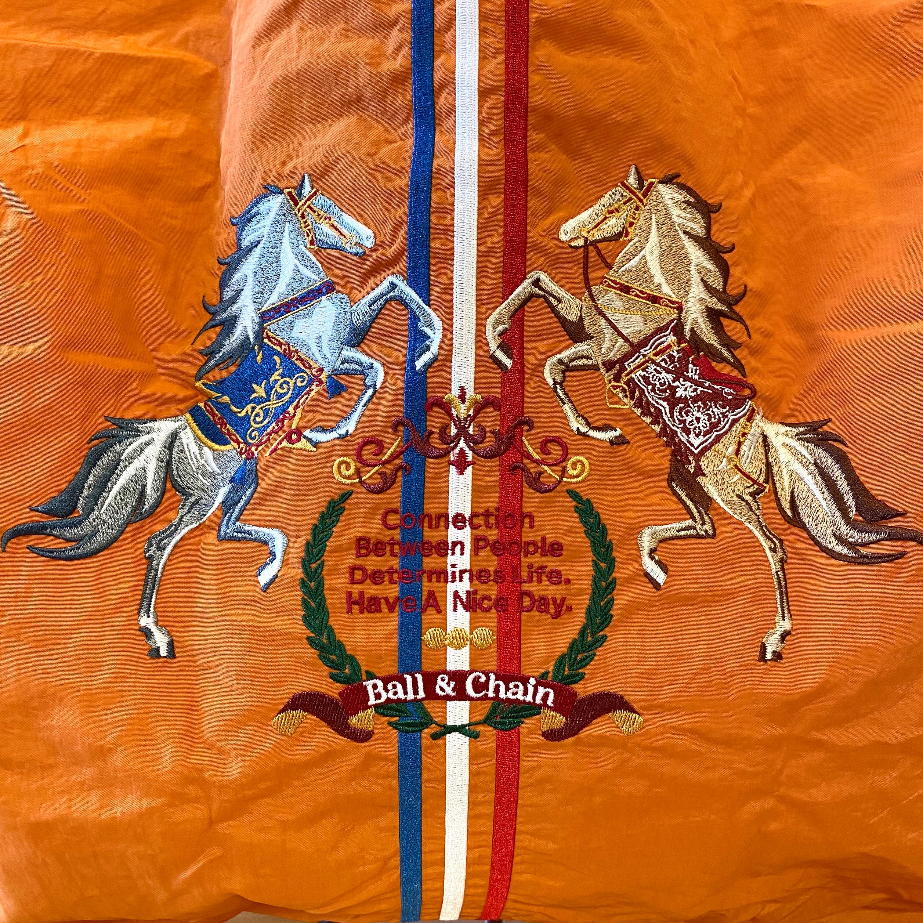 耐久性、撥水性に優れた厚手のポリエステル素材に、 グラフィックデザインをそのまま「刺繍」で施すことで、 高級感がありデザイン性の高いバッグとなっています。