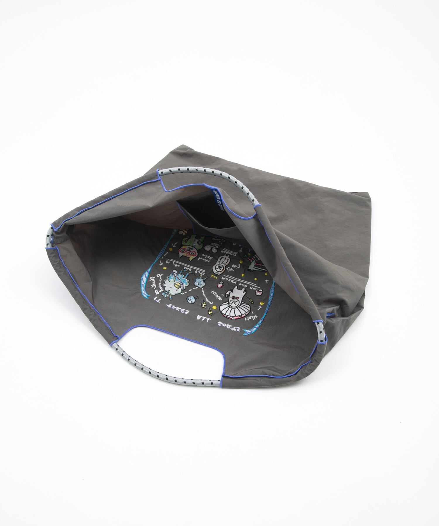 耐久性、撥水性に優れた厚手のポリエステル素材に、グラフィックデザインをそのまま「刺繍」で施すことで、高級感がありデザイン性の高いバッグとなっています。