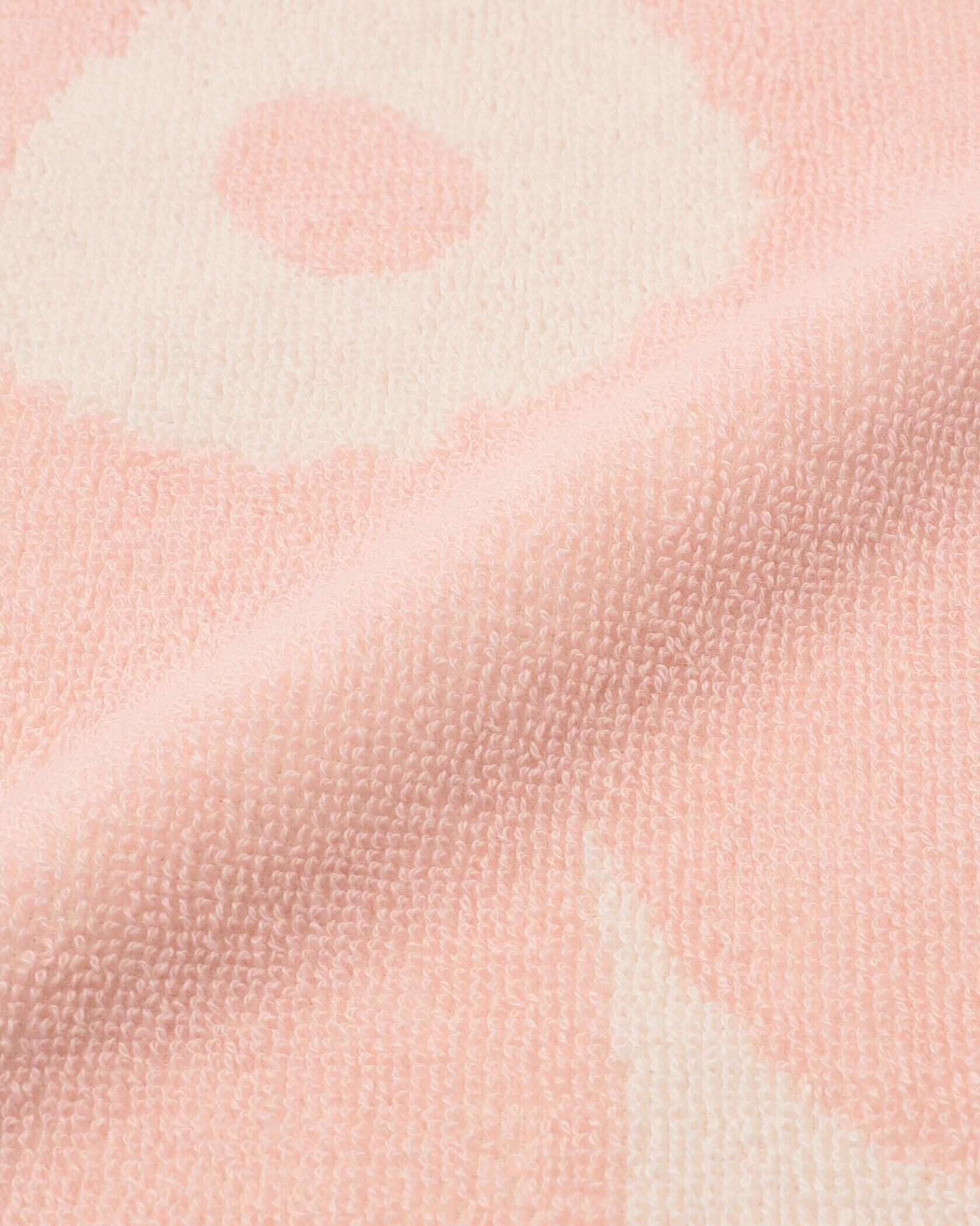 (26x26cm)。大きなUnikko柄を一面にあしらい、淡いピンク色で優しい雰囲気に仕上げています。ふんわりとした風合いで肌触りがよく、水気もしっかり吸収します。裏面にタブが付いているため、キッチンや水回りに吊るして使うのもおすすめです。