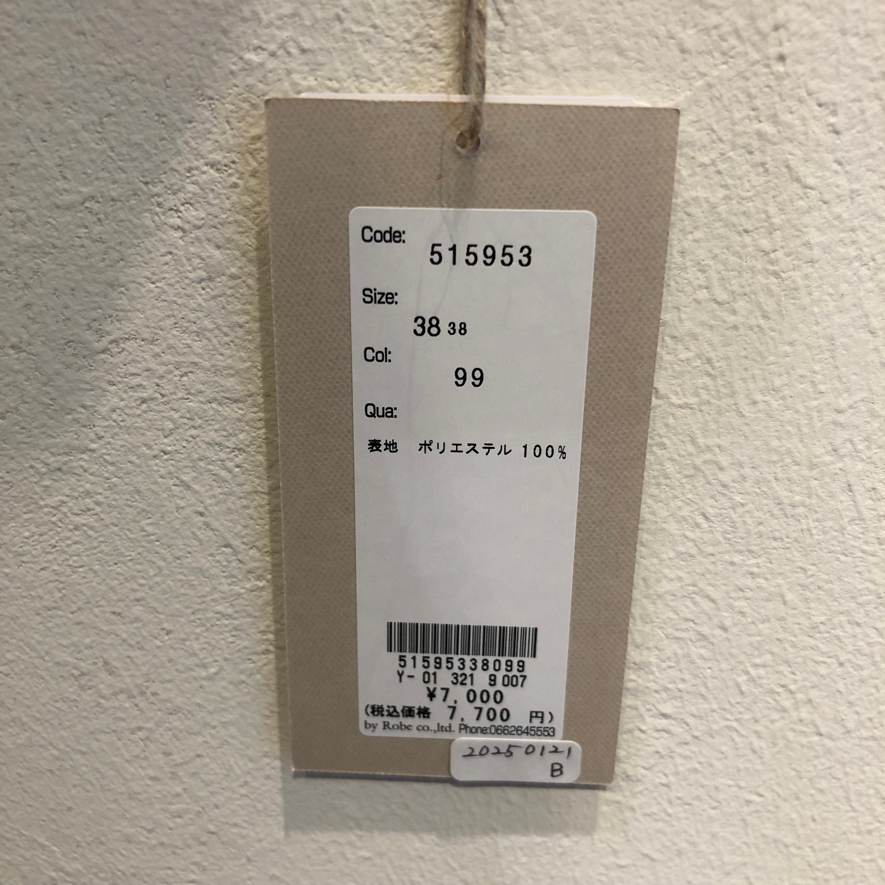 38(平置き実寸) 着丈:58.5㎝/身幅:61㎝/肩幅:59㎝/袖丈:50㎝