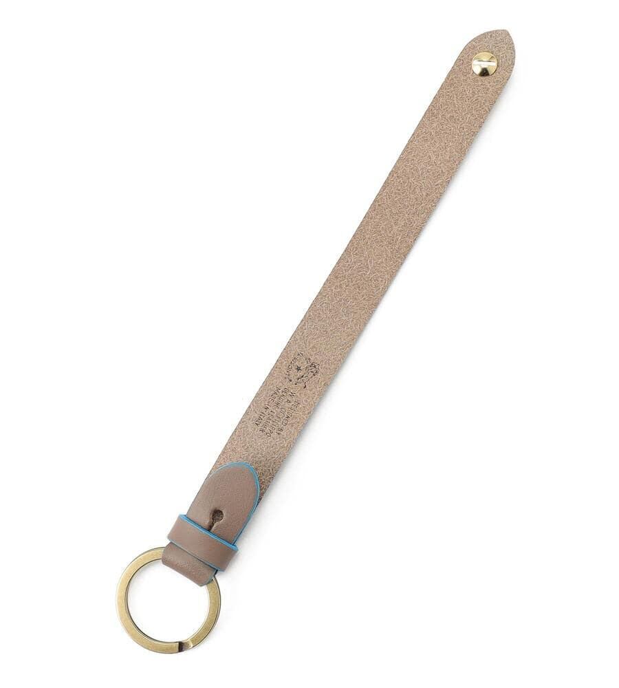 シンプルだからこそ、高級感が際立つキーリング。手に取りやすい長さのレザーハンドルには、ロゴの型押しと配色の縁取りを施し、存在感のあるデザインに仕上げています。バッグの持ち手やベルトループなどにも着けられる仕様になっているのが特徴。