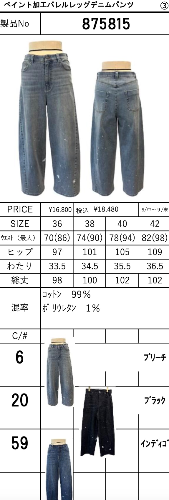 ayane アヤン/ペイント加工バレルレッグデニムパンツ 875815