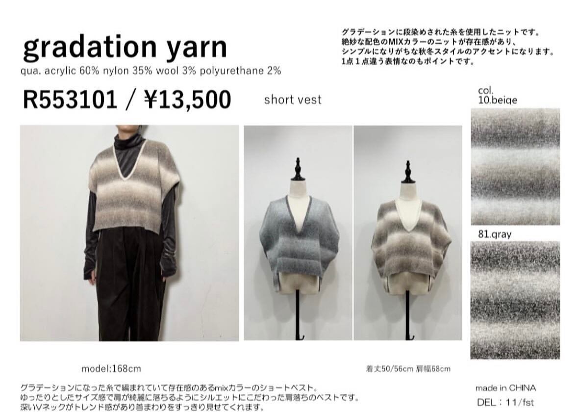 グラデーションになった糸で編まれていて存在感のあるmixカラーのショートベスト。