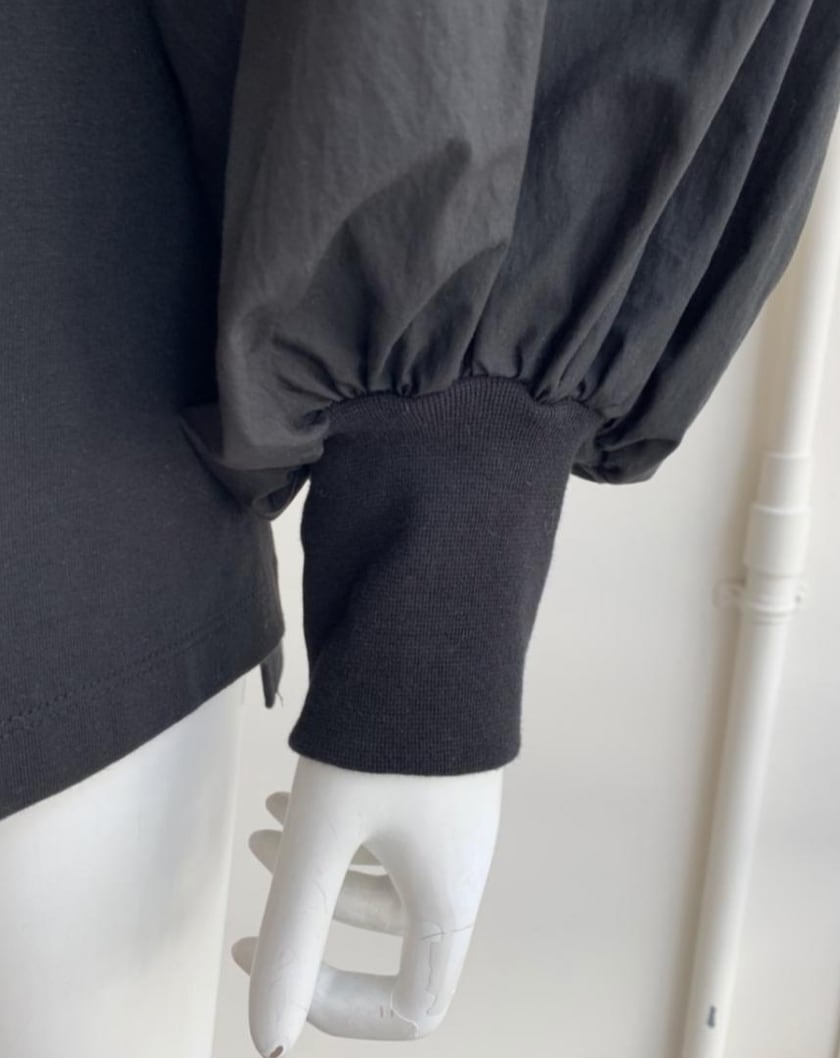 ハリ感のある素材をお袖部分に使用しているので自然と立体的なシルエットに。