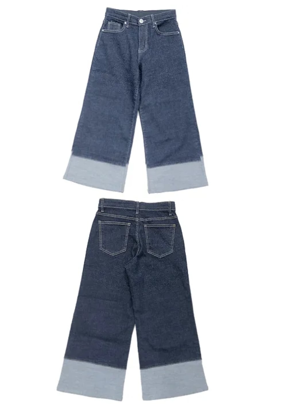 はっきりした広がりと裾の切替が特徴のバギーフレアパンツです。