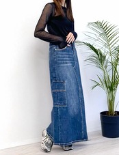 ご予約 INDIMARK インディマーク/デニム カーゴ スカート ベーシックブルー WJ199