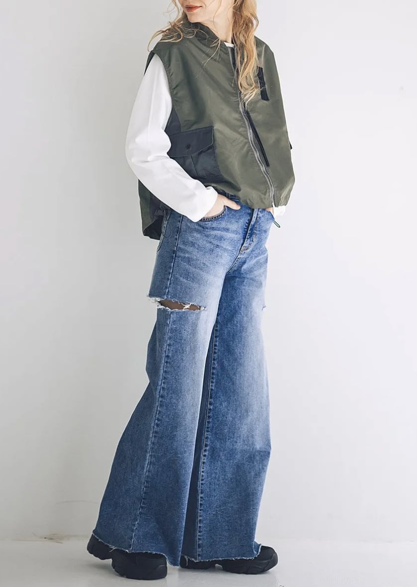 太ももにほつれ感のあるカットオフデザインが施されています。