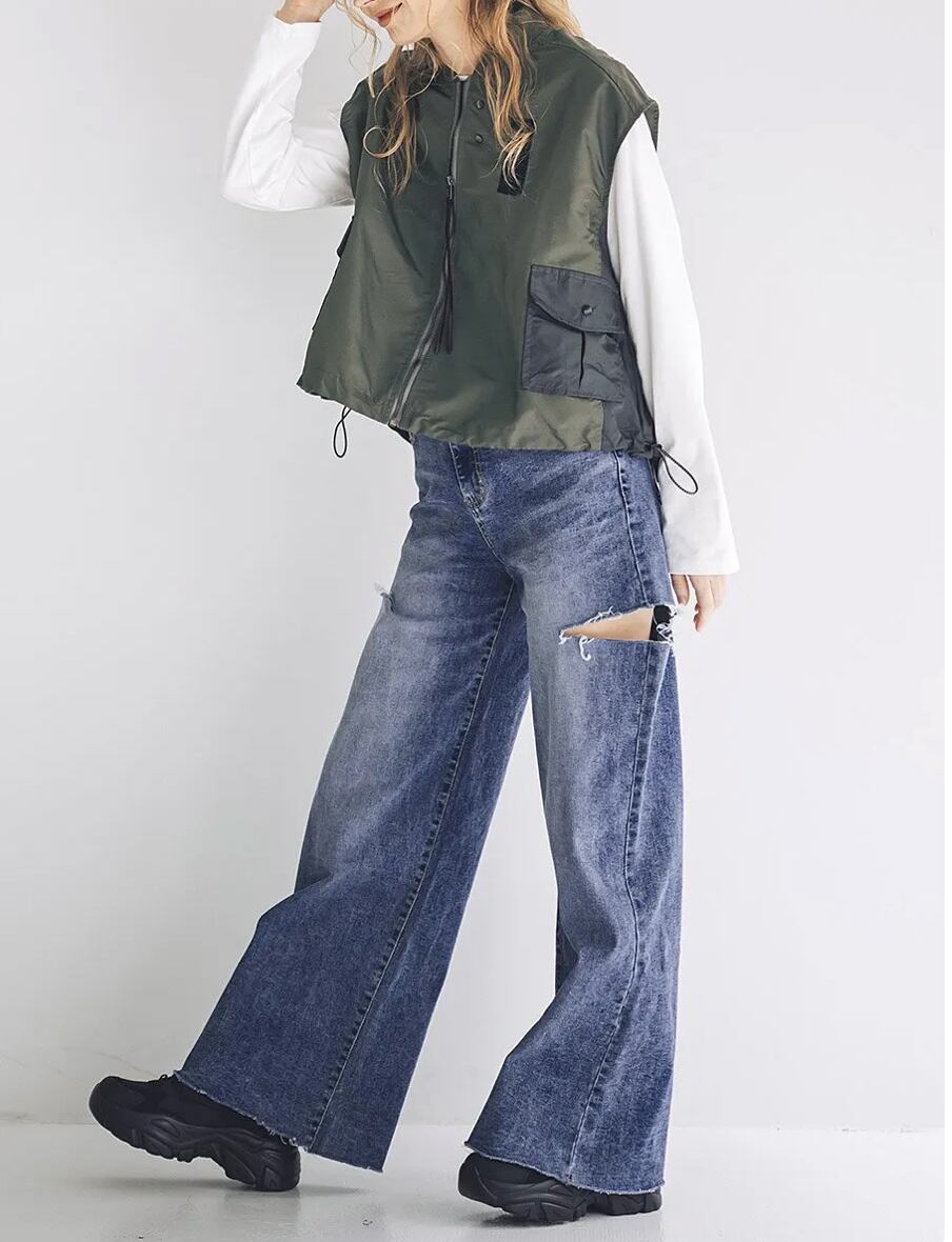 ご予約 INDIMARK インディマーク/スラッシュ ワイド デニム WJ157
