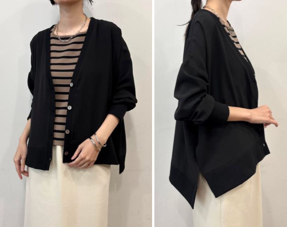 sirodelabonteでは定番のカーティンガンを今回、こちらのリネンライクハイツイストの素材でニットではないシャツライクな布常素材に落とし込みました。
