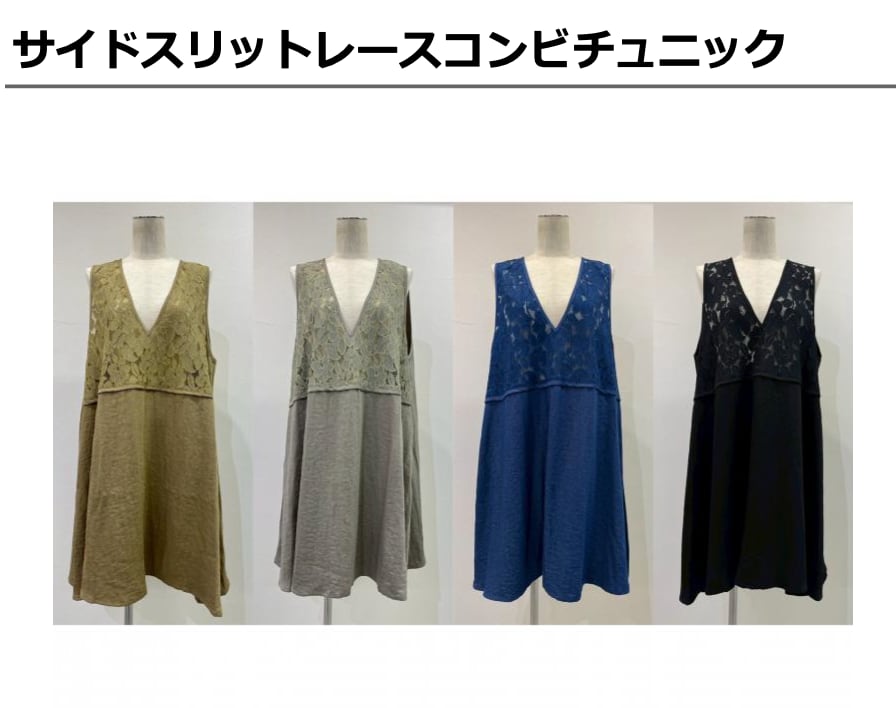 2月発売 CYAN tokyo サイドスリットレースコンビチュニック 610429