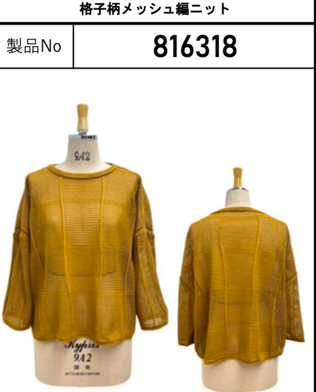 ご予約 ayane アヤン 格子柄メッシュ編ニット 816318