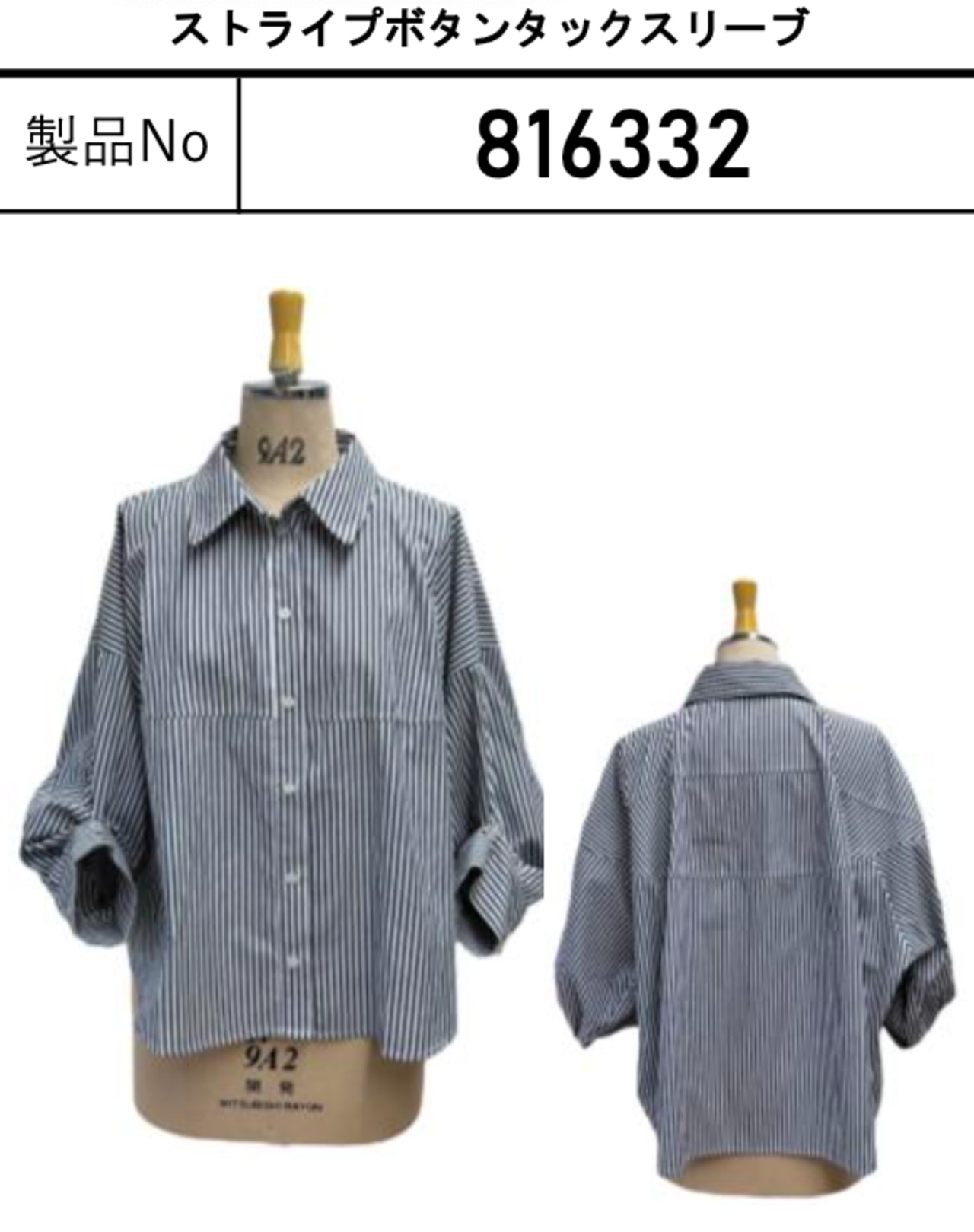 ご予約 ayane アヤン ストライプボタンタックスリーブ 816332