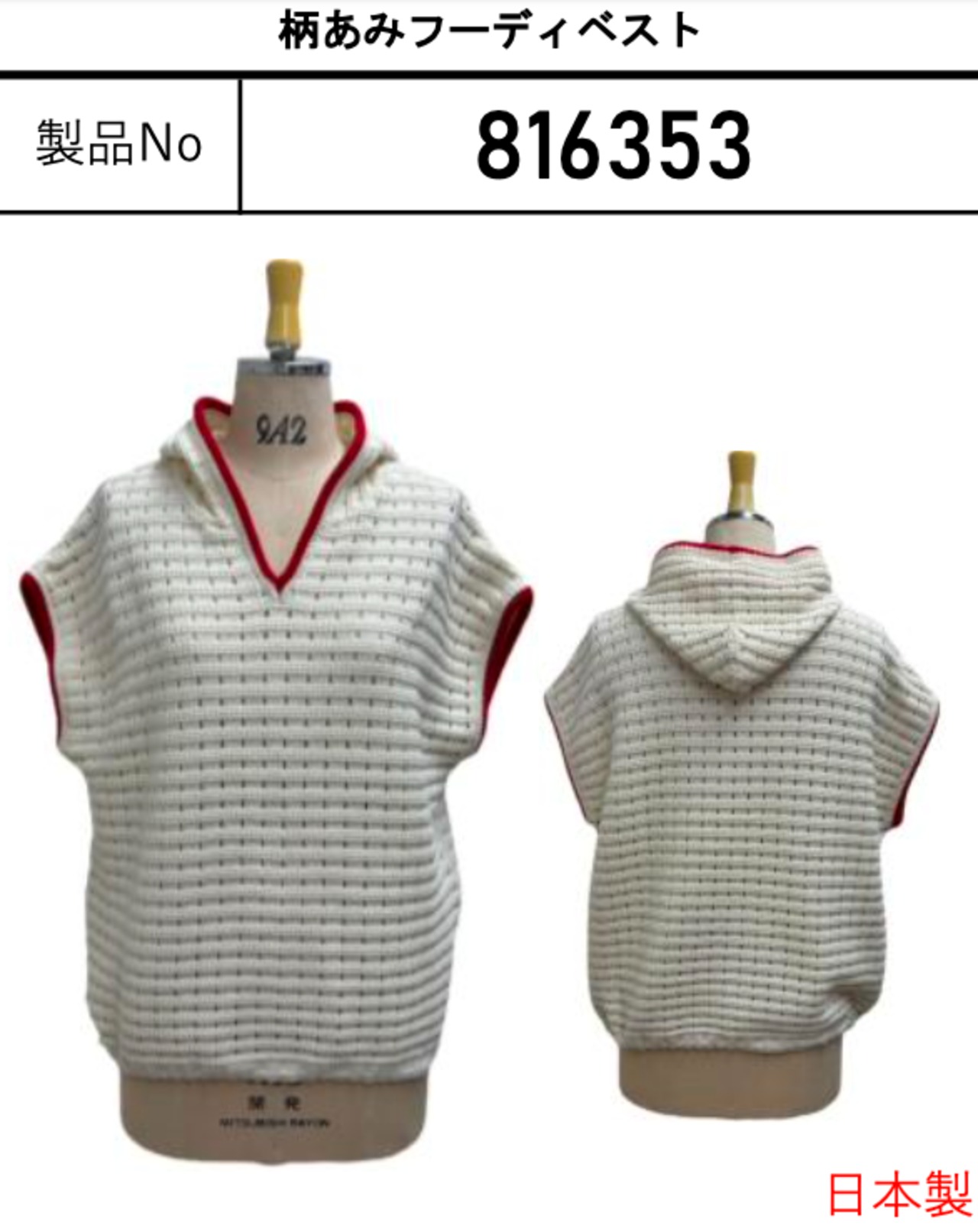 ご予約 ayane アヤン 柄あみフーディベスト 816353