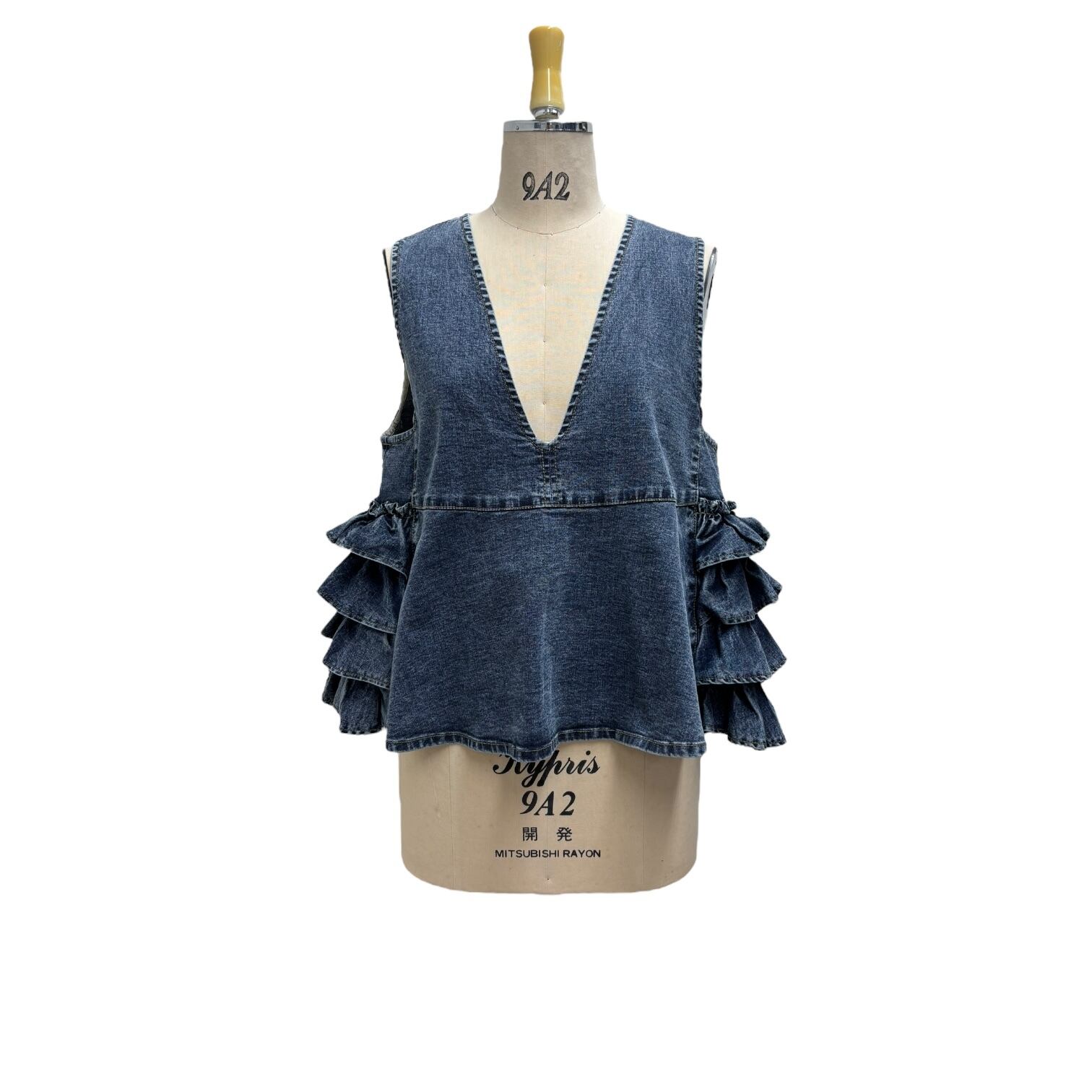 ご予約 ayane アヤン デニム地バックフリルベスト 816315