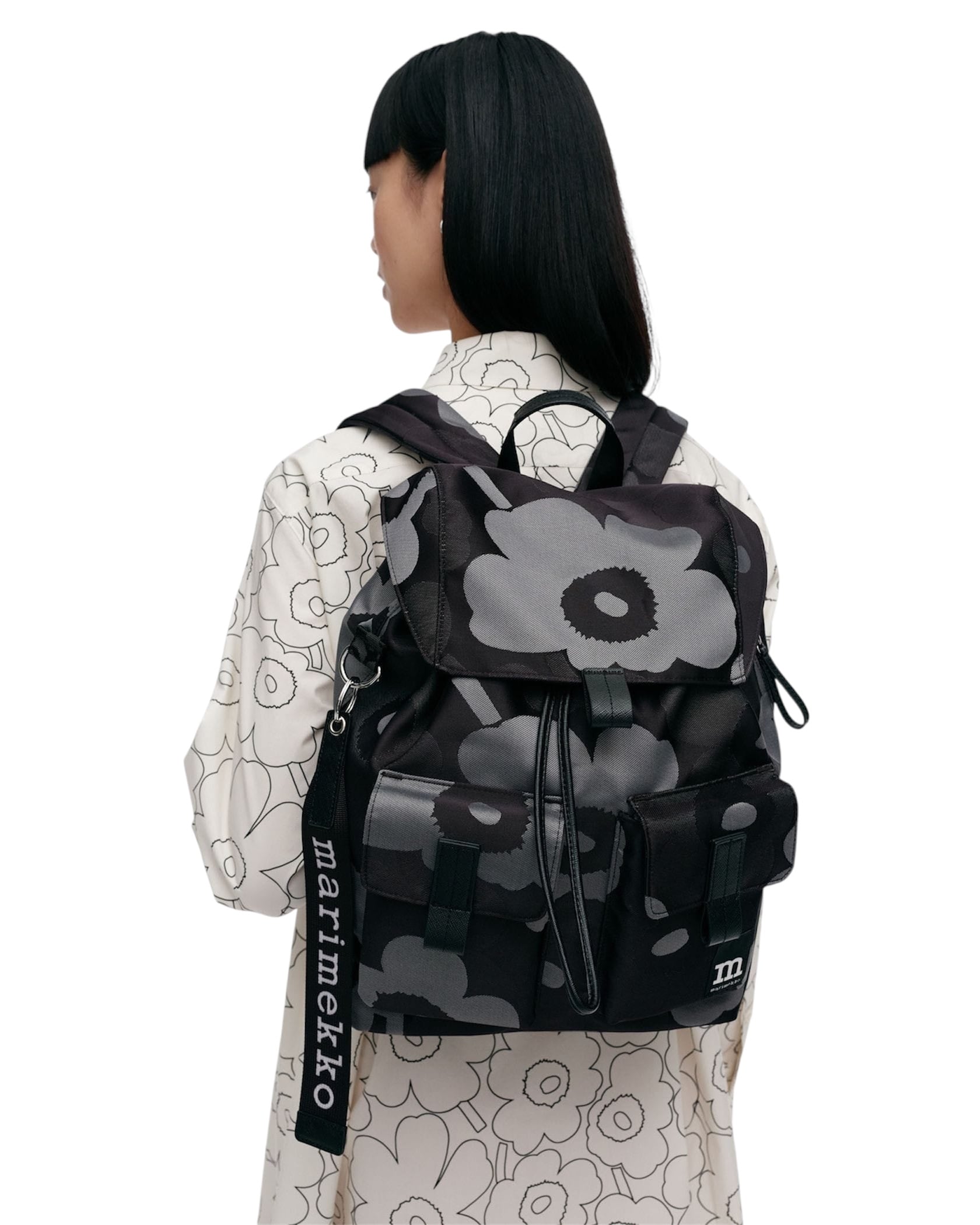 Maija Isolaがデザインを手がけた、「花」を意味するUnikko (ウニッコ)柄のバックパックLサイズです。開口部はドローコードで開閉し、フラップも備えています。トップを開けずにサイドからも荷物を出し入れできる仕様。