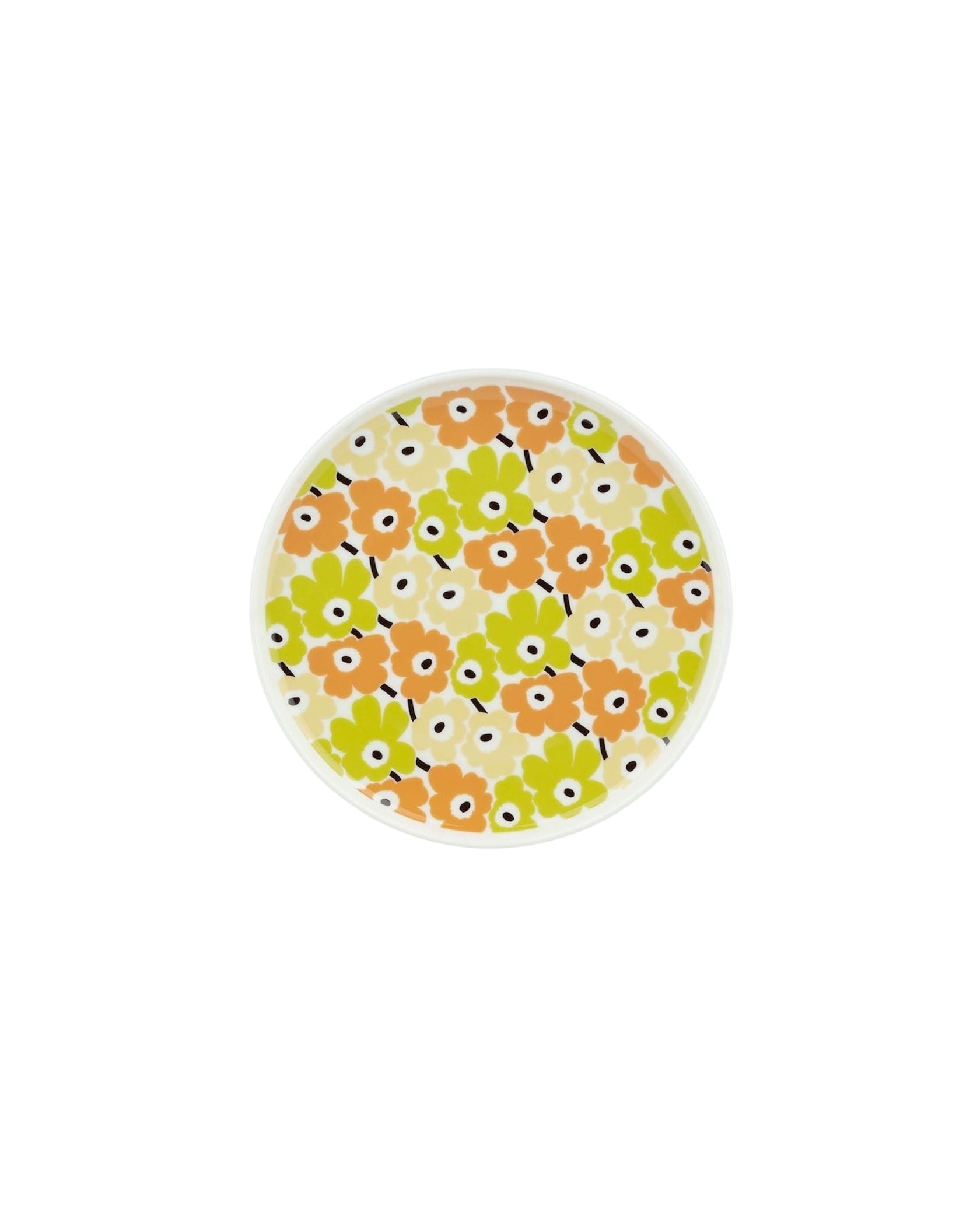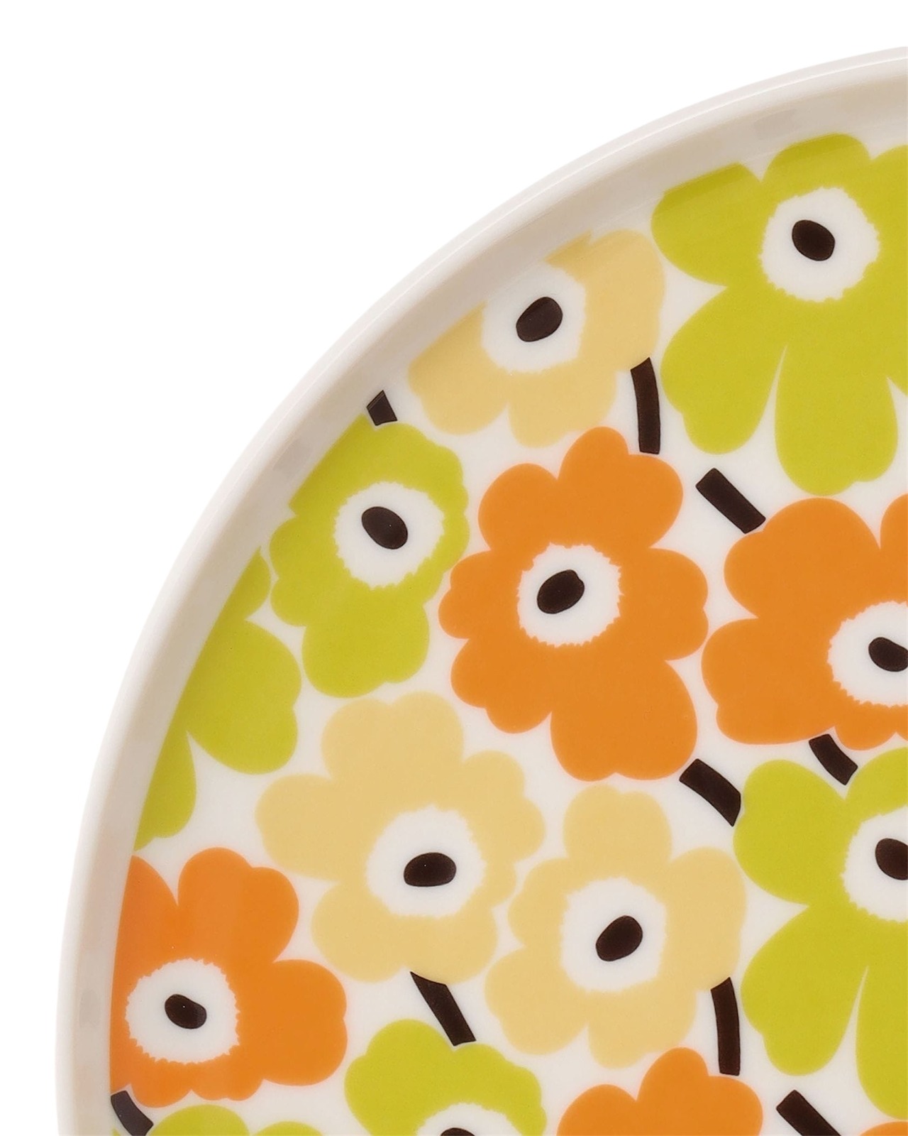 ライトグリーンやライトイエローで華やかに仕上げたUnikko柄のプレート。卓上に彩りを与えてくれるアイテムは、パーティーなどのスペシャルなシーンでも活躍します。