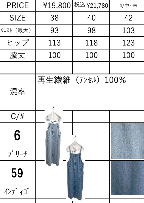 ご予約 ayane アヤン テンセルデニムジャンパースカート 826504