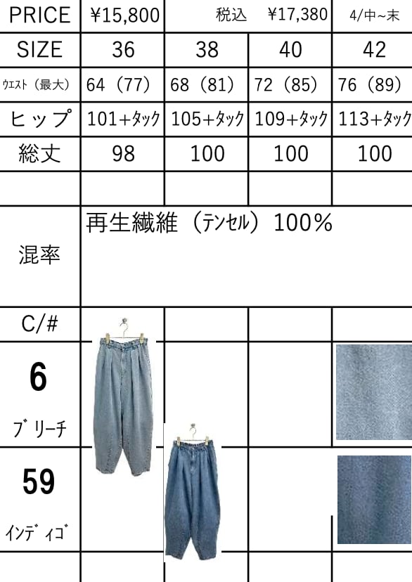 ご予約 ayane アヤン テンセルデニムタックバレルレッグパンツ 826507