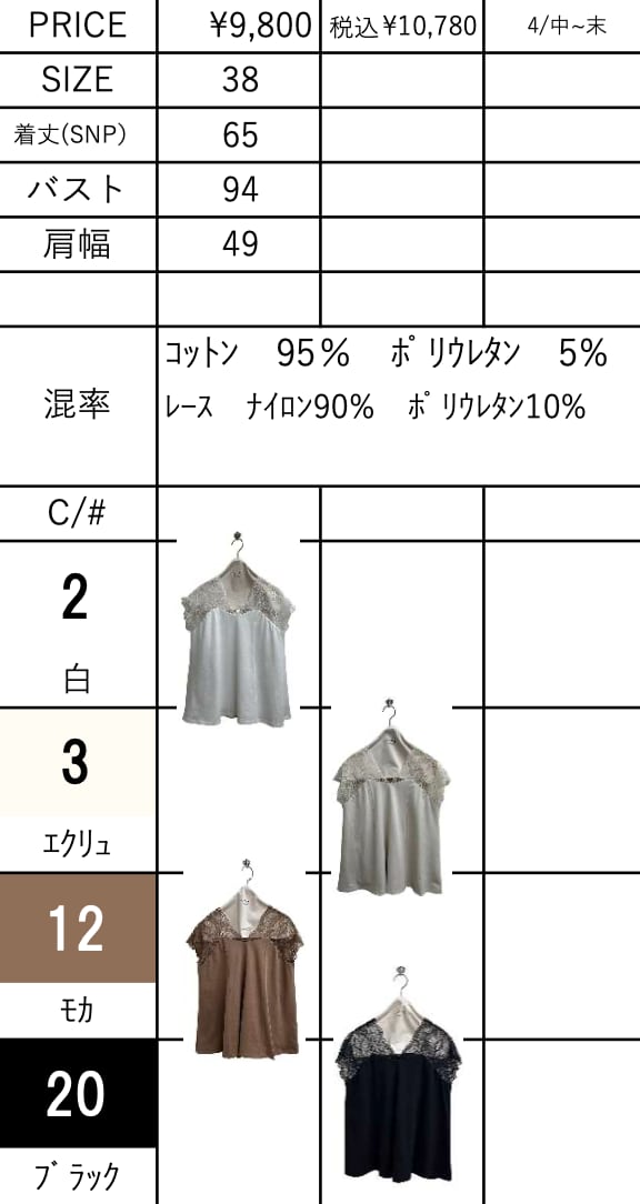 ご予約 ayane アヤン レースフレアタンクトップ 826525