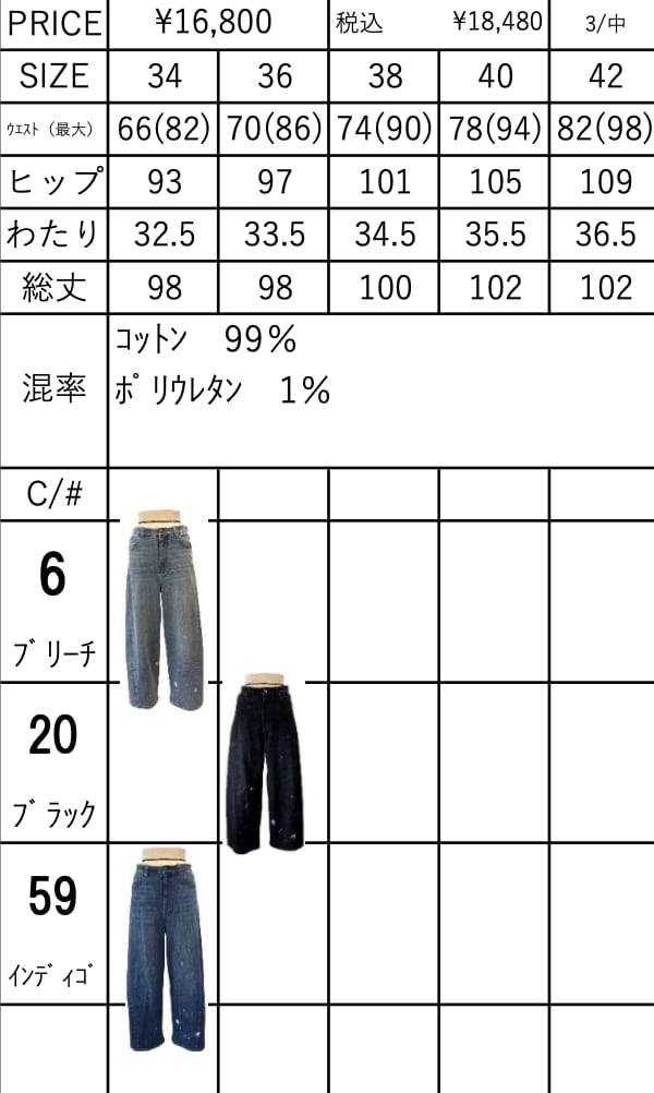 ご予約 ayane ペイント加工バレルレッグデニムパンツ 826543
