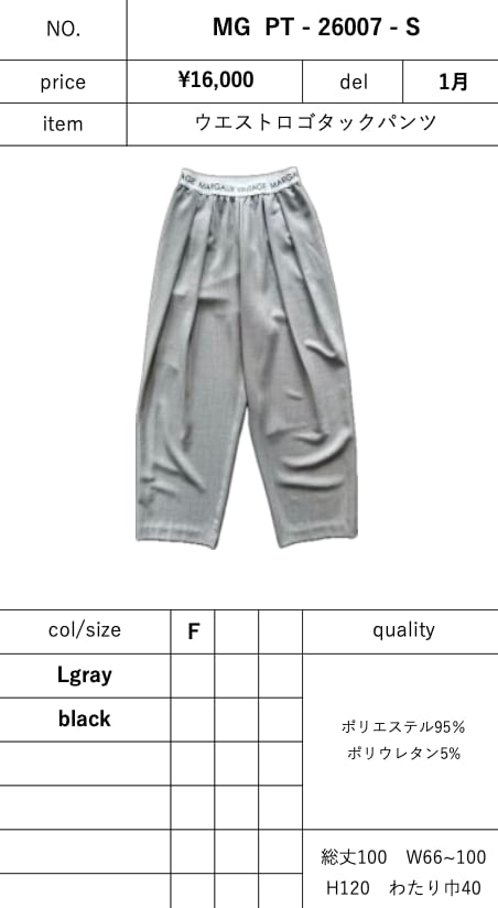 ご予約 margaux vintage / マルゴーヴィンテージ 再販 MG PT - 26007- S-2 ウエストロゴタックパンツ