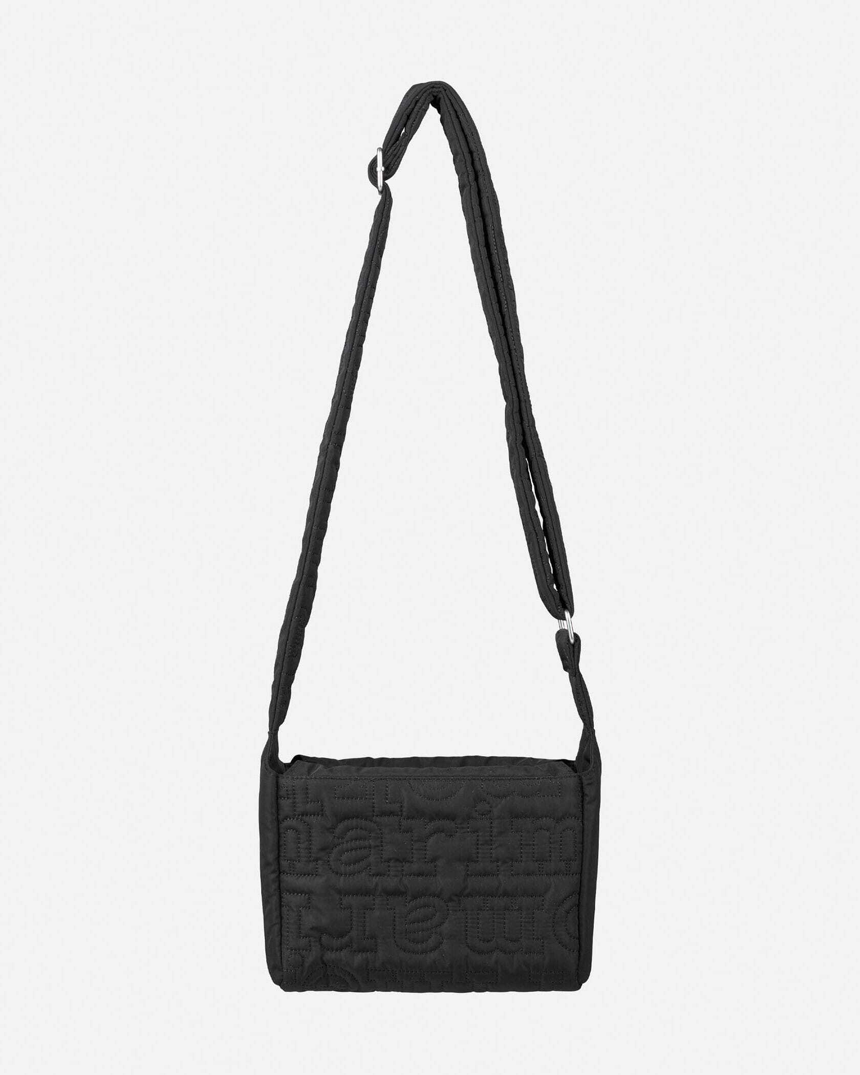一目でそれとわかる、モダンなレタードロゴをキルティングで表現した、パファーな素材感のショルダーバッグ。コンパクトながらもしっかりとしたマチがあり、収納力の高さも満点です。斜め掛けできるストラップもキルティングになっており、肩に食い込みにくい仕様。