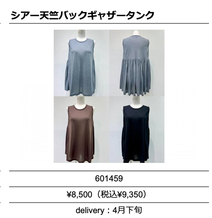 4月発売 CYAN tokyo シアー天竺バックギャザータンク 601459