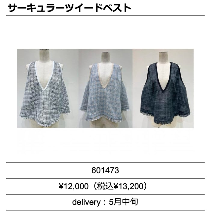 5月発売 CYAN tokyo サーキュラーツイードベスト601473