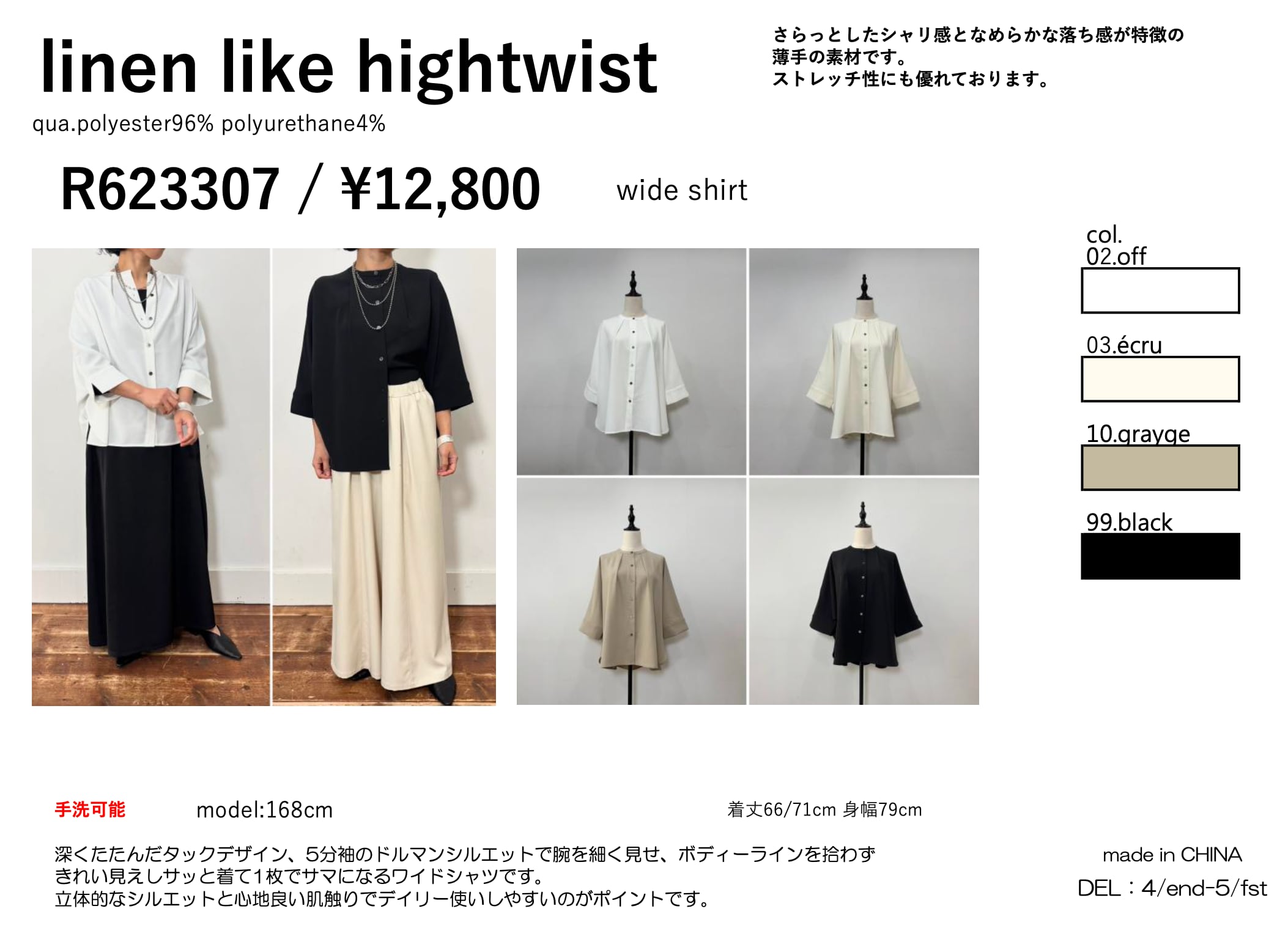 4月発売 siro de labonte /R623307. wide shirt
