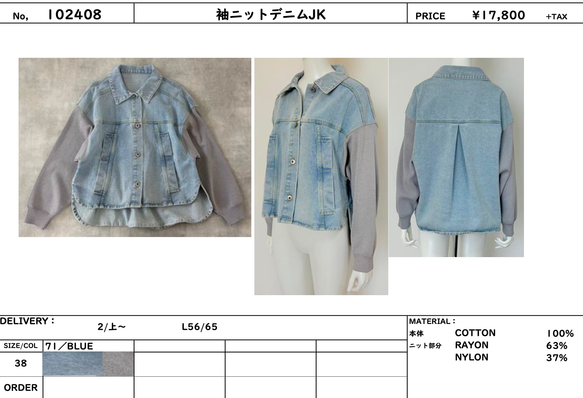 LUGIVA TOKYO /ルギヴァ102605 袖ニットデニムJK
