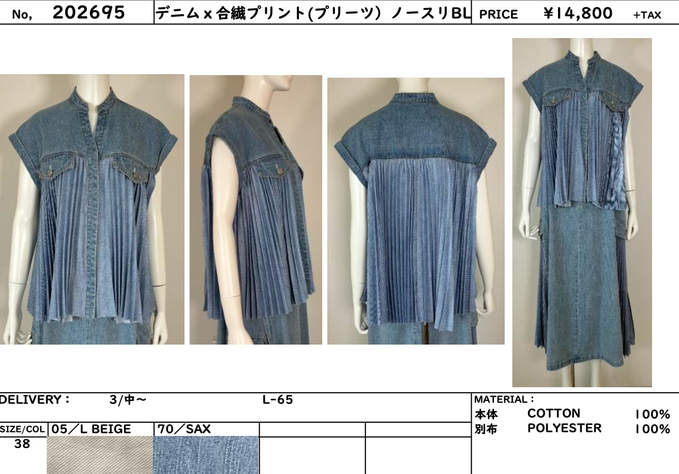 3日ライブ 3月配送 LUGIVA TOKYO /ルギヴァ 202695 デニムx合繊プリント(プリーツ)ノースリBL