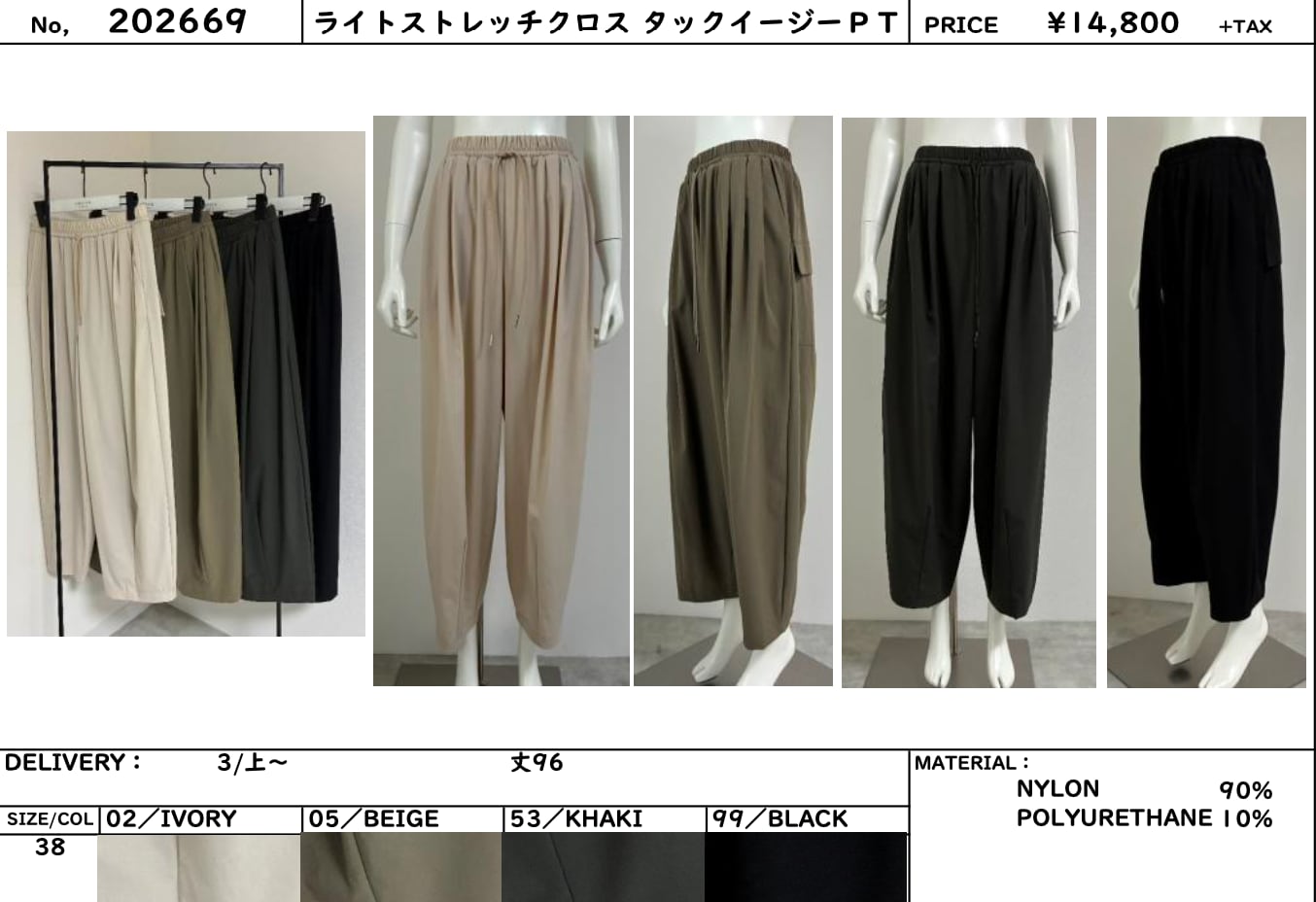 3日ライブ 3月配送 LUGIVA TOKYO /ルギヴァ 202669 ライトストレッチクロス タックイージーPT
