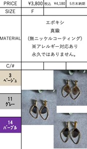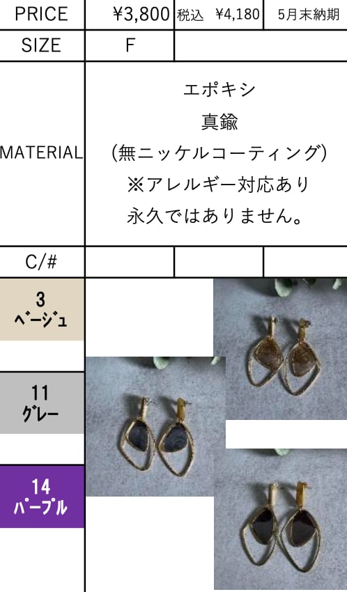 ご予約 charmaer/チャーマー エポキシドロップピアス 236604