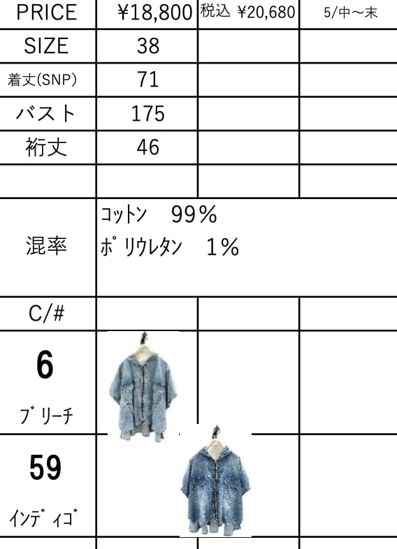 ご予約 ayane アヤン ストレッチダンガリーポンチョ 836601