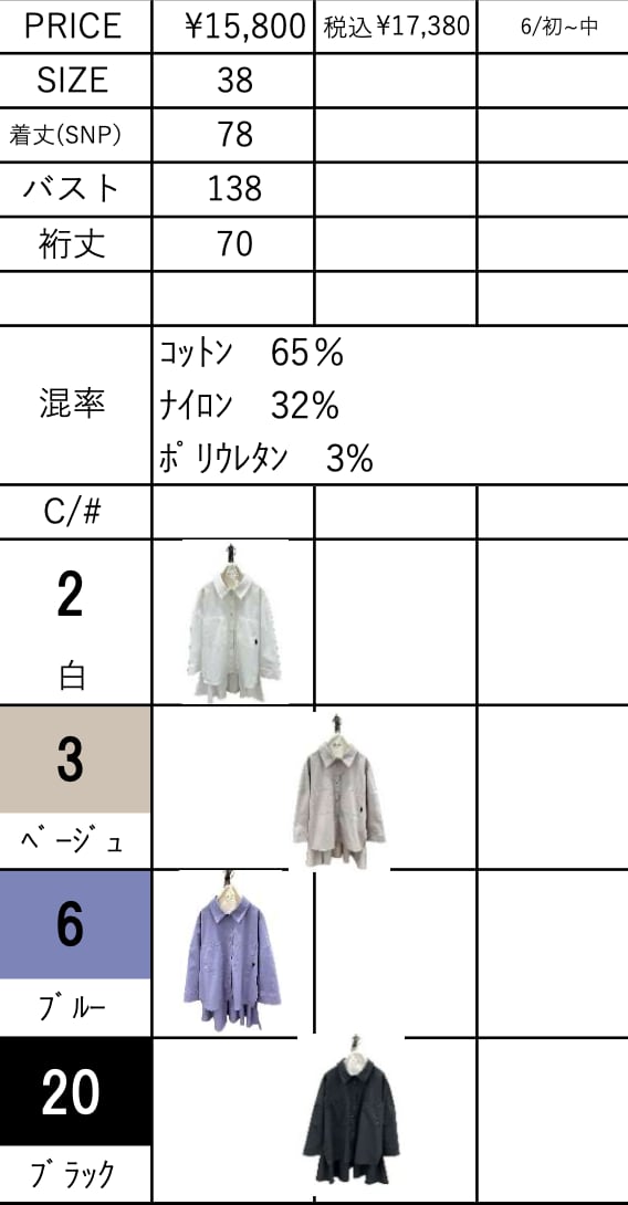 ご予約 ayane アヤン C/N/PUシャツ 836620