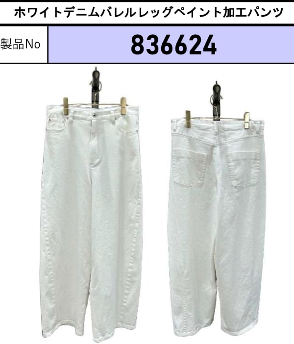 ご予約 ayane アヤン ホワイトデニムバレルレッグペイント加工パンツ 836624