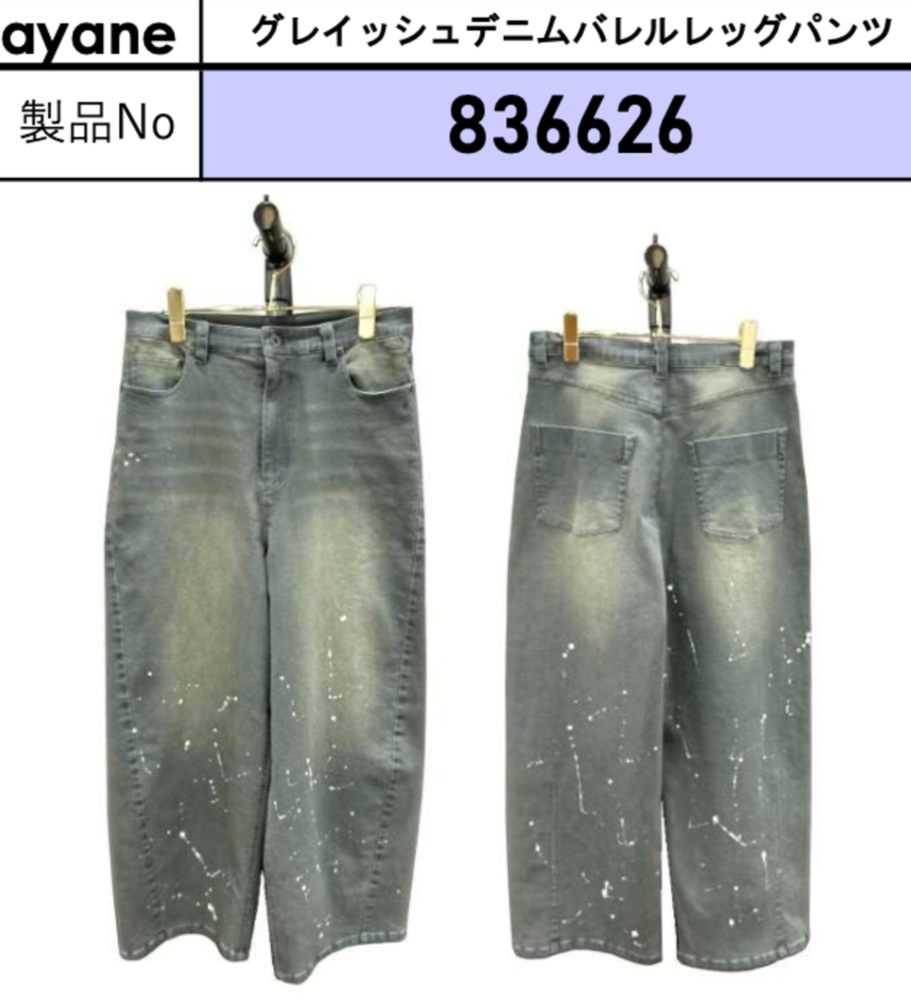 ご予約 ayane アヤン グレイッシュデニムバレルレッグパンツ 836626