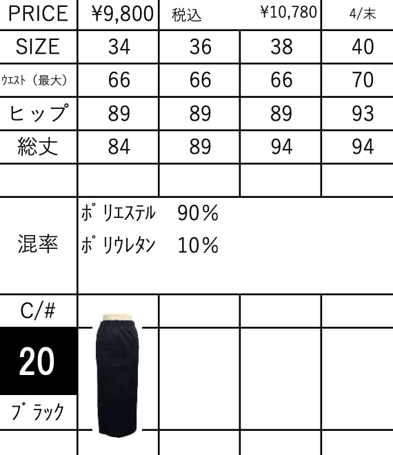 ご予約 ayane アヤン リブ生地ペンシルスカート(ブラック)836627