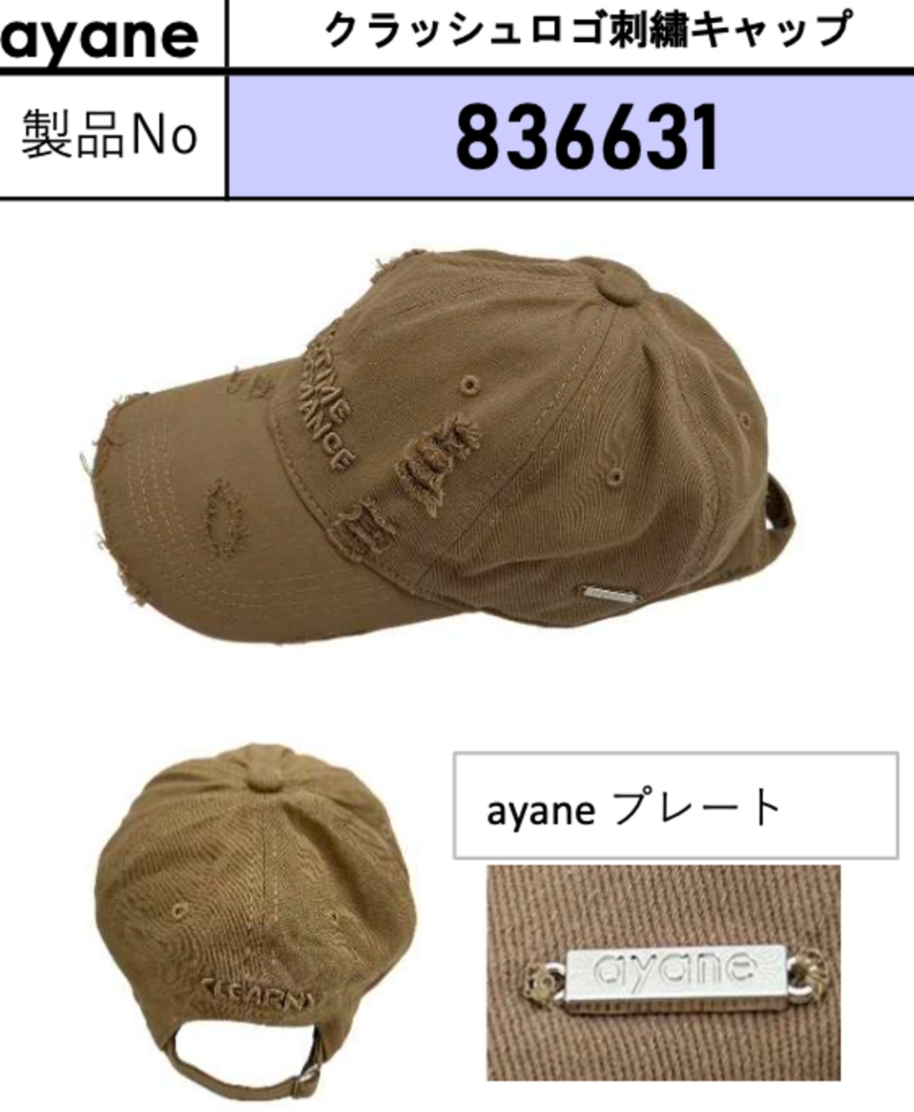 ご予約 ayane アヤン クラッシュロゴ刺繍キャップ 836631