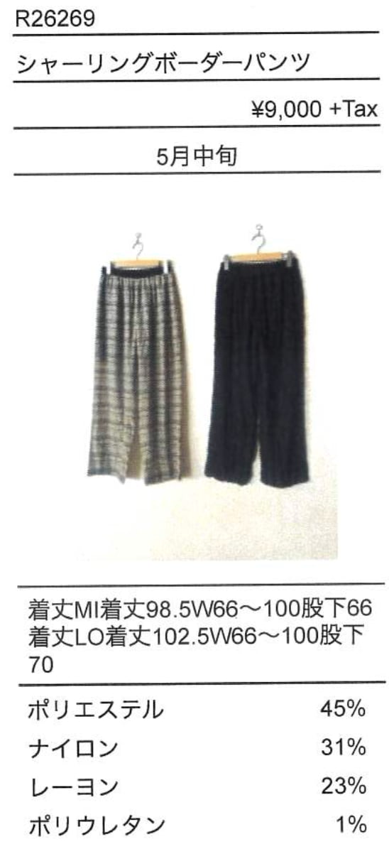 ご予約 RILATO/ リラート R26269 シャーリングボーダーパンツ