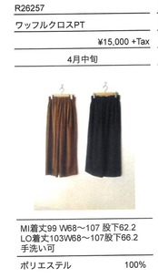 ご予約 RILATO/ リラート R26257 ワッフルクロスPT