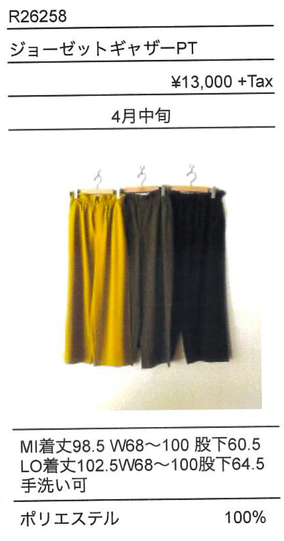 ご予約 RILATO/ リラート R26258 ジョーゼットギャザーPT