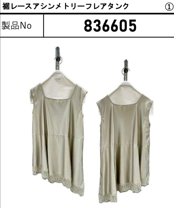 ご予約 ayane アヤン 裾レースアシンメトリーフレアタンク 836605