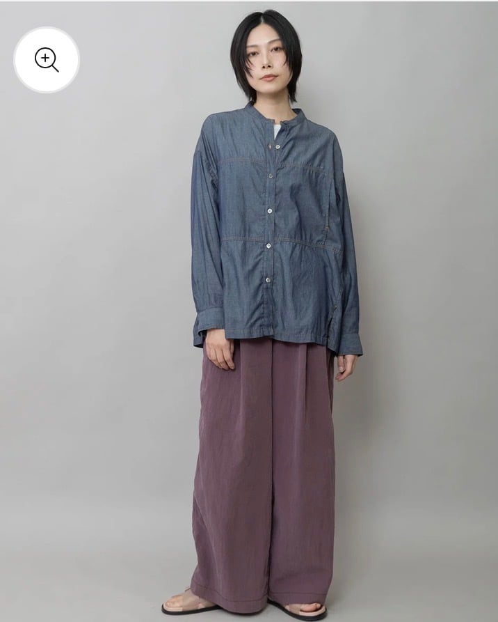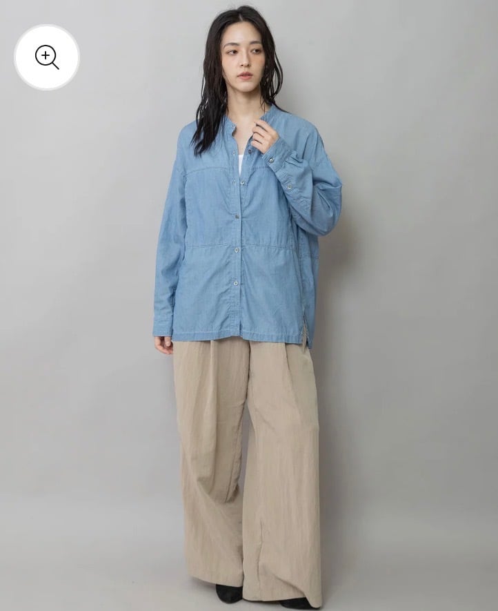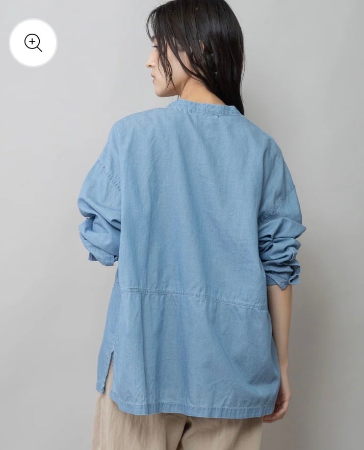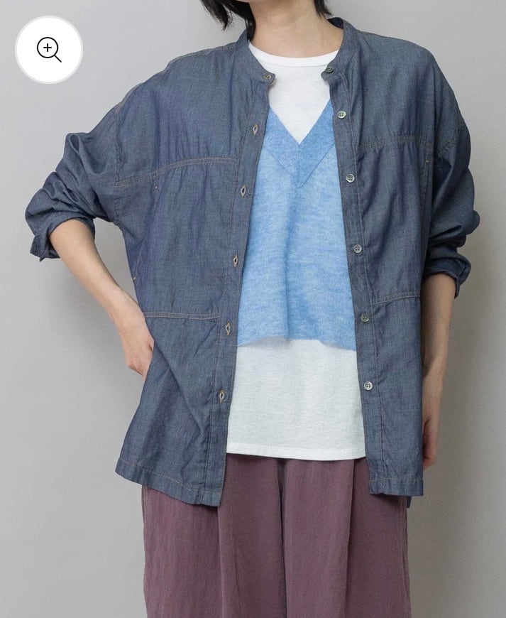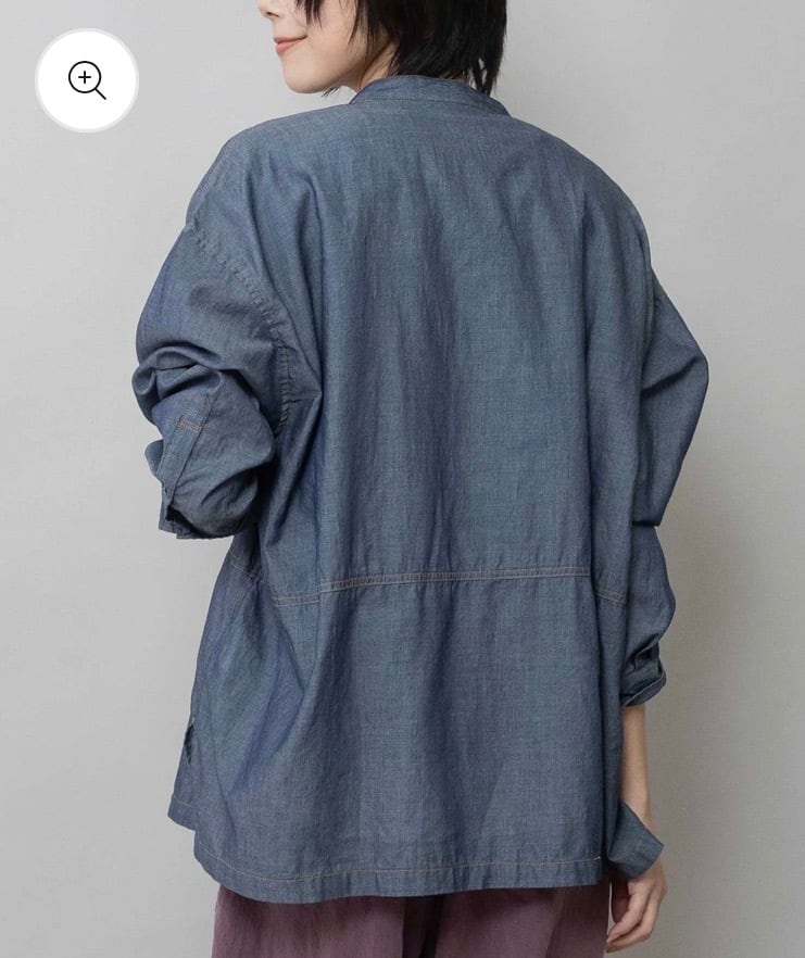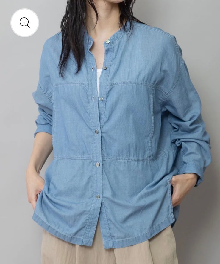 羽織でも使いやすいゆったりしたサイジングのシアーデニムシャツです。