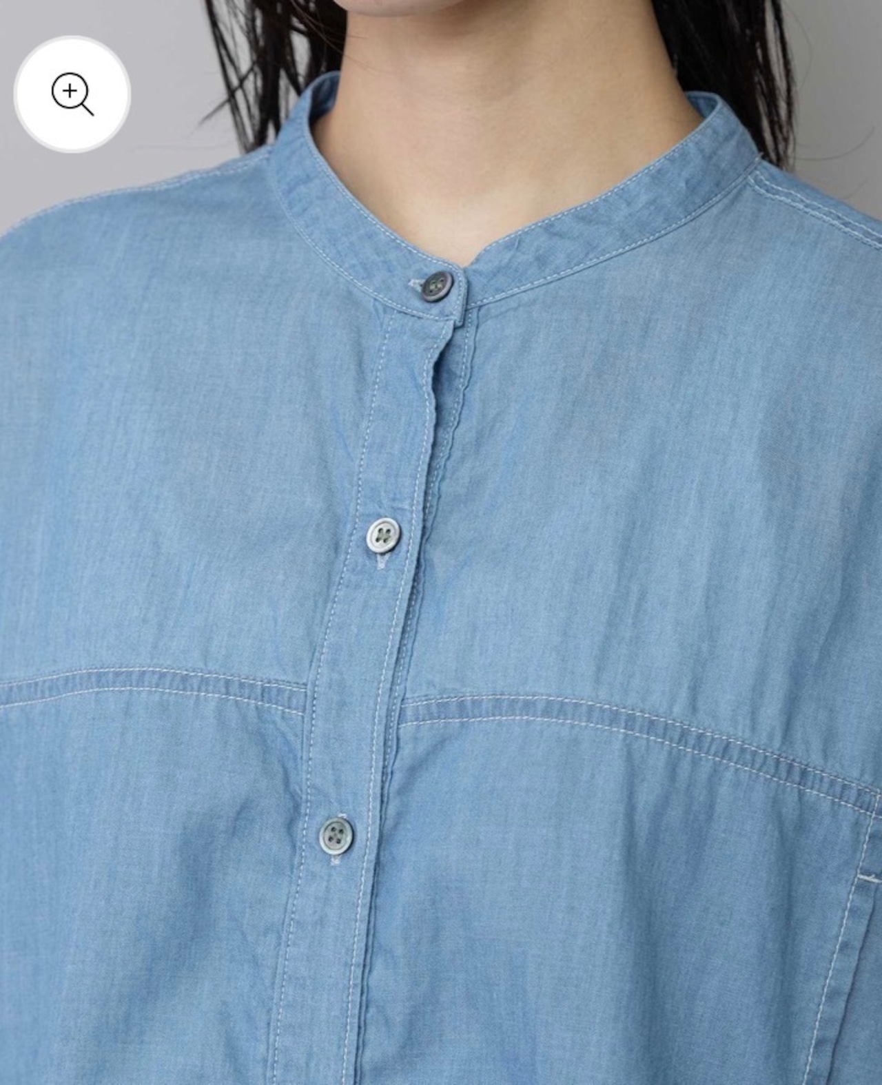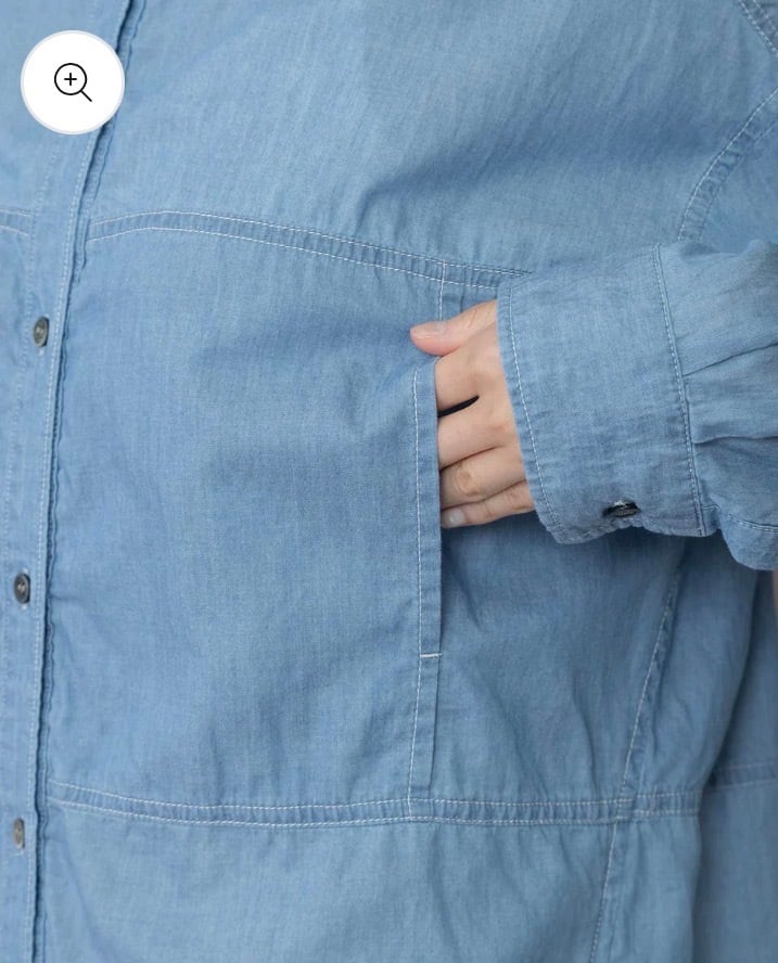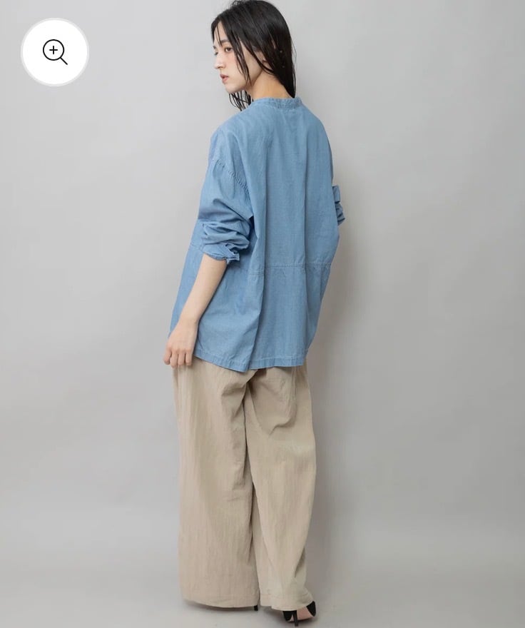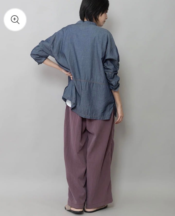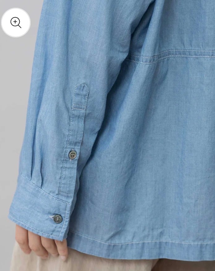 羽織でも使いやすいゆったりしたサイジングのシアーデニムシャツです。