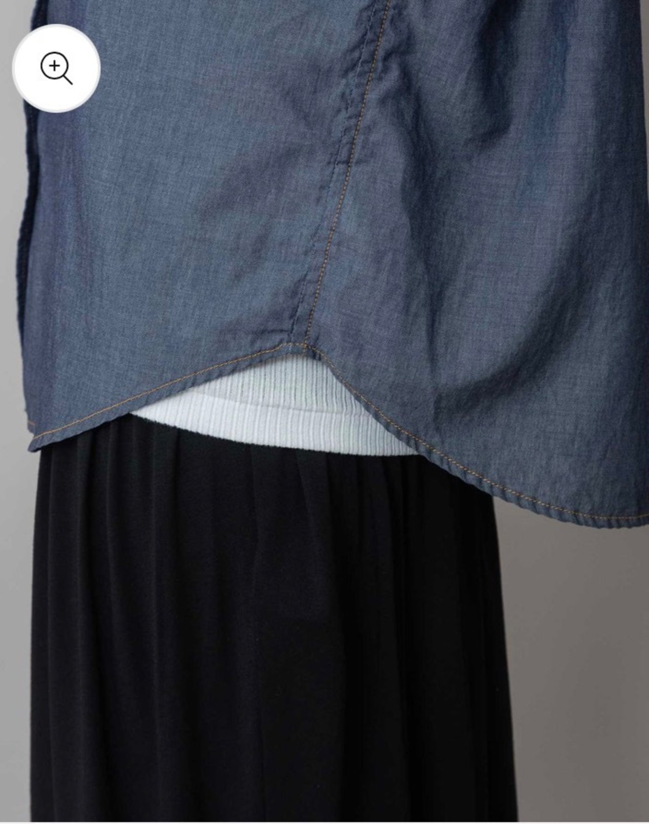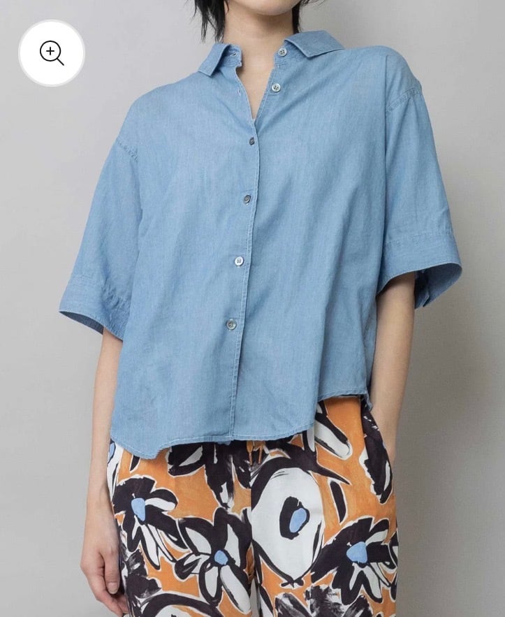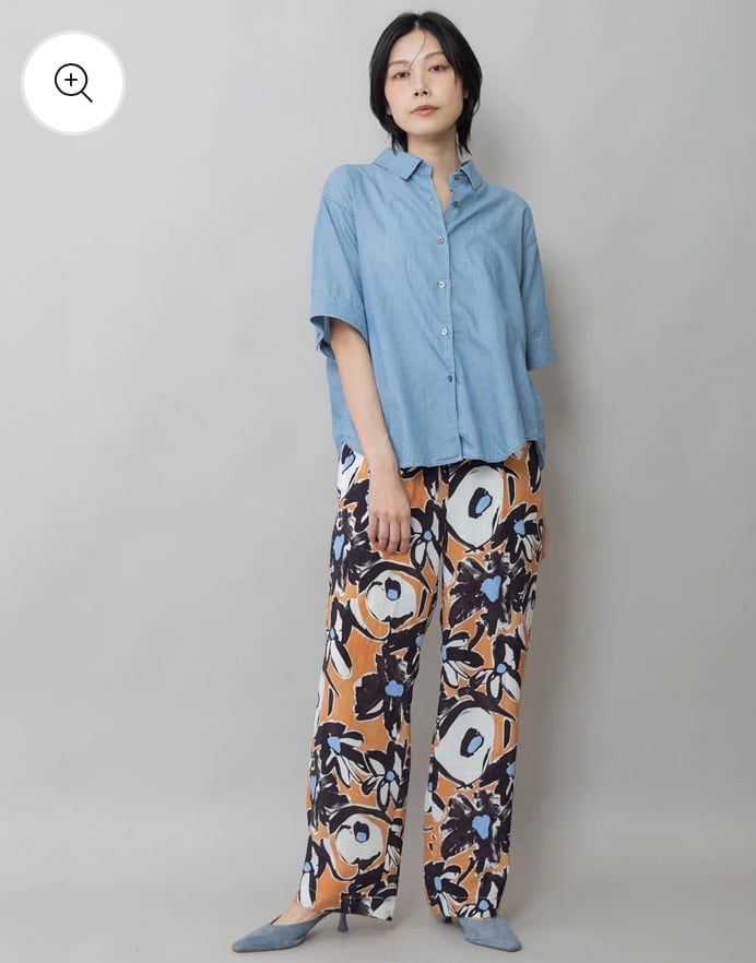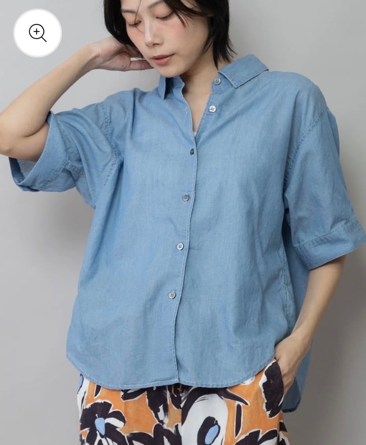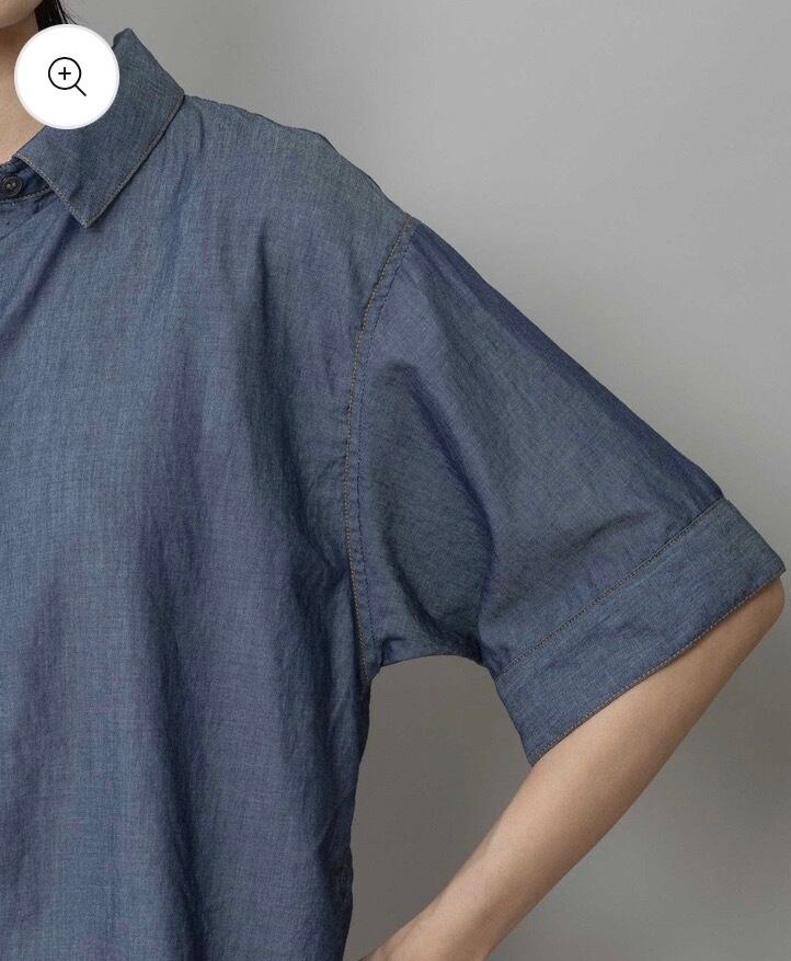 シャツカラーの後ろ衿にゴムシャーリングを施した抜けのある衿まわりがカジュアルなデニムシャツを女性らしい印象に魅せてくれます。