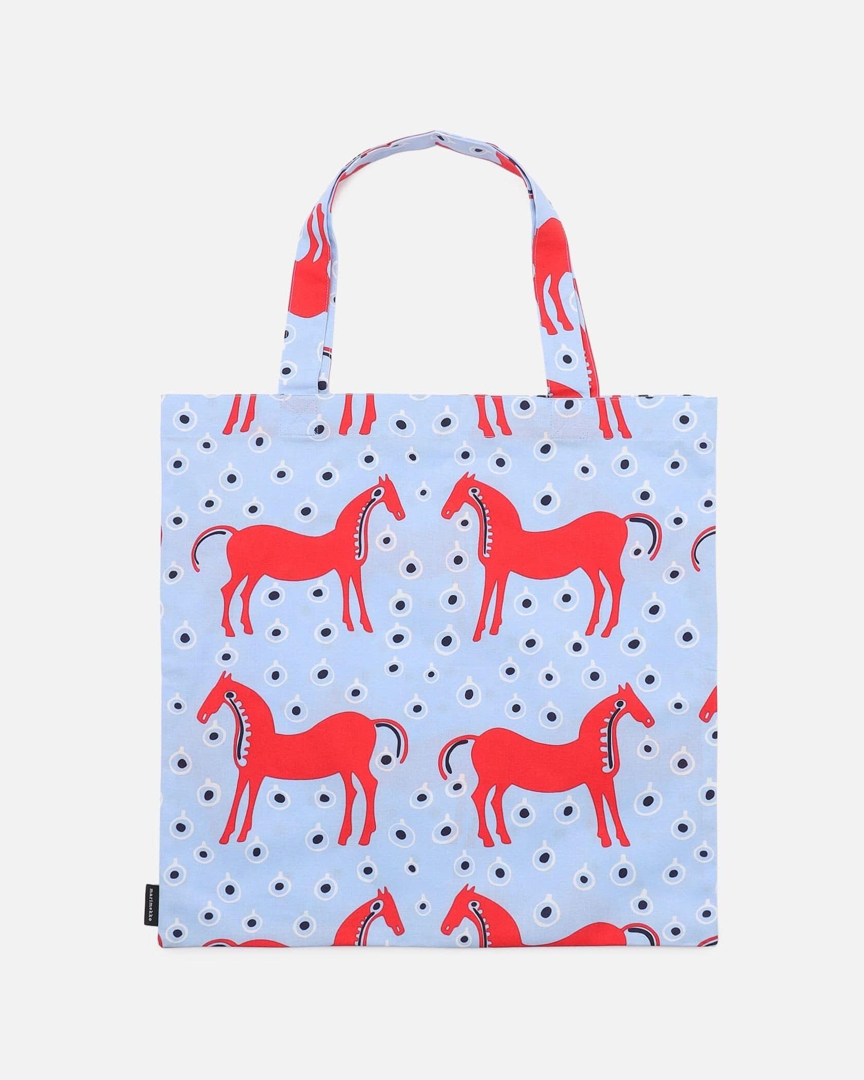 黒い牝馬」を意味する「Mustatamma(ムスタ タンマ)」柄は、Maija Isolaがデザインを担当しました。デイリーユースに最適なサイズ感のトートバッグ。薄マチでかさばらず、使い勝手の良いモデルです。