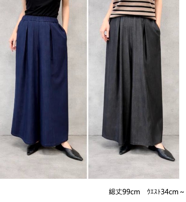 ゆったりと脚のラインを拾わず、ウエストはぐるりゴム、紐入りで履き心地は抜群です。
