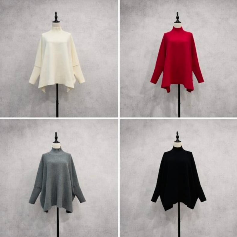 さっと着るだけでサマになるニットトップスです。ワイドシルエットで体型カバーしつつ、どこかこなれた雰囲気を醸し出してくれます。ボトルネックで大人っぽく、カジュアルながらも上品さを兼ね備えたデザインで中広いシーンで着用いただけます。